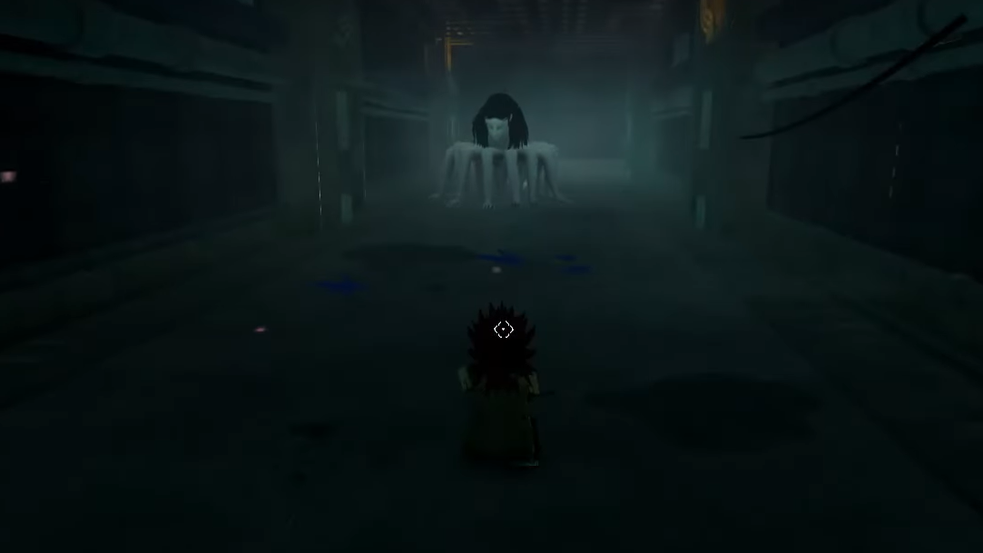 Once all three keys are collected, you use them on the generator closet. That triggers the Eternity Devil cutscene: the hallway warps, you sprint away from the door as it rushes you, then slam it shut to survive. The arena flips, and you drop through to a vertical boss space.