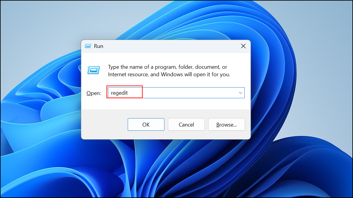Step 1: Press Windows + R, type regedit, and press Enter to open the Registry Editor. If prompted, allow the app to make changes to your device.