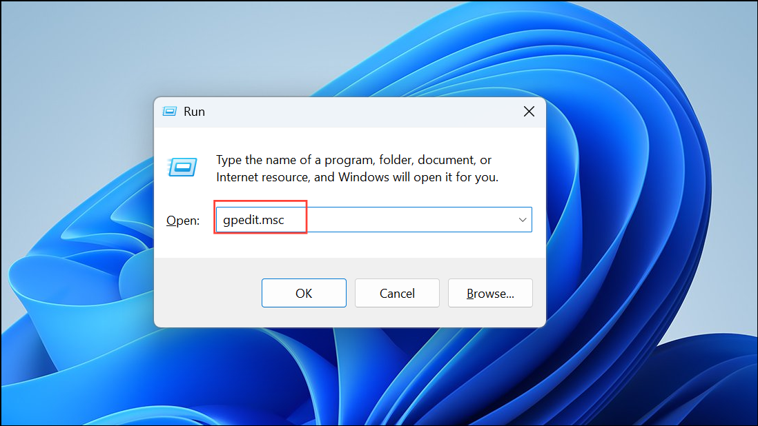 Step 1: Open the Group Policy Editor by pressing Windows + R, typing gpedit.msc, and pressing Enter. This tool is available on Windows Pro, Enterprise, and Education editions.