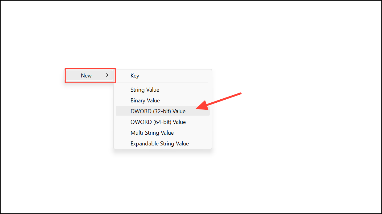 Step 3: In the right pane, right-click and select New > DWORD (32-bit) Value. Name it DisableSearchBoxSuggestions.