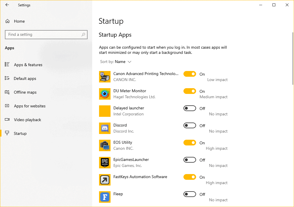 To disable an app from starting alongside the system, Turn Off the toggle next to it. Do it for all the apps that have the High or Medium impact label, or the ones which aren’t useful for your setup.