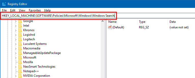 HKEY_LOCAL_MACHINESOFTWAREPoliciesMicrosoftWindowsWindows Search