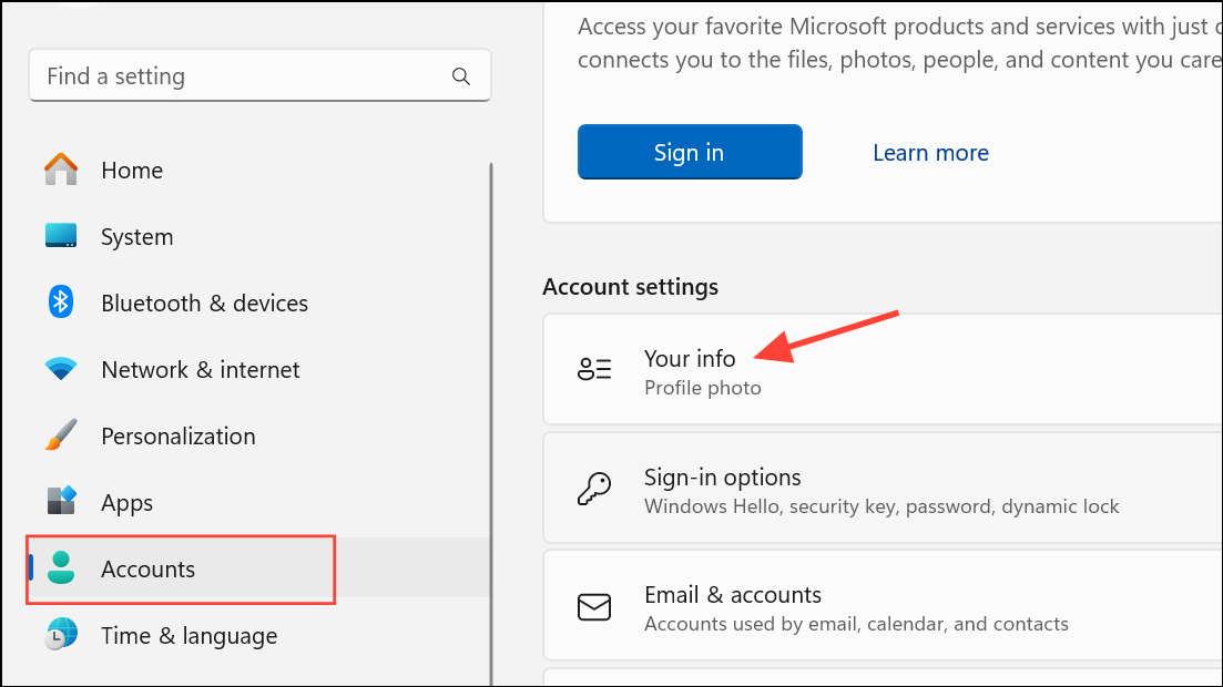 Step 1: Open Settings by pressing Windows + I. Navigate to the Accounts section, then select Sign-in options.