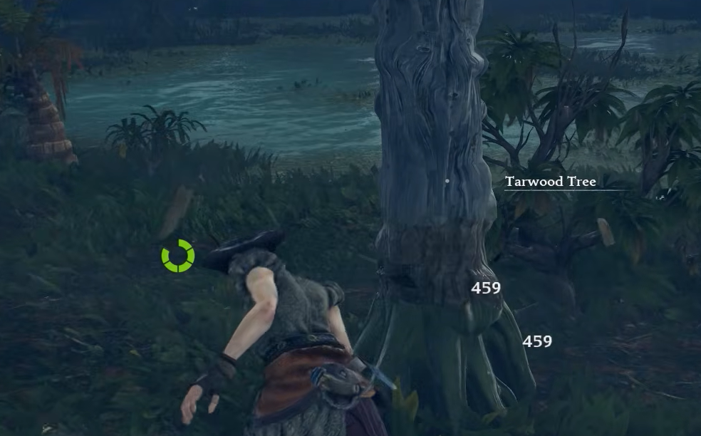 - Target ficus trees: Ficus trees fall in one to three hits and grow in tight clusters with bushes, so a single swing often yields wood and plant fiber at once.