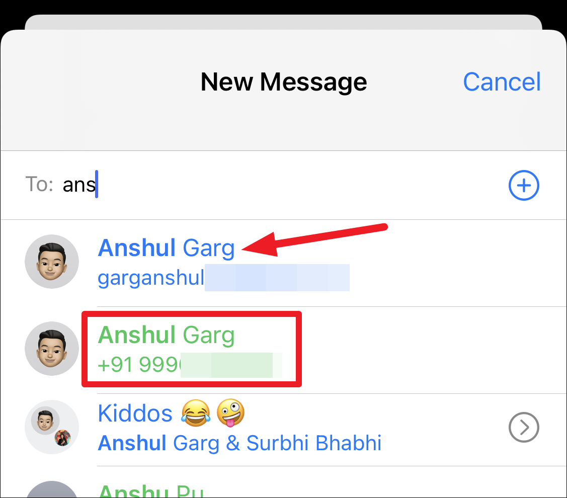 If you’re starting a new conversation with someone, make sure their contact name, number, or email address appears in blue and not green. Remember, if a contact’s number is appearing in green but their email address is in blue, choose the latter to send the iMessage to.
