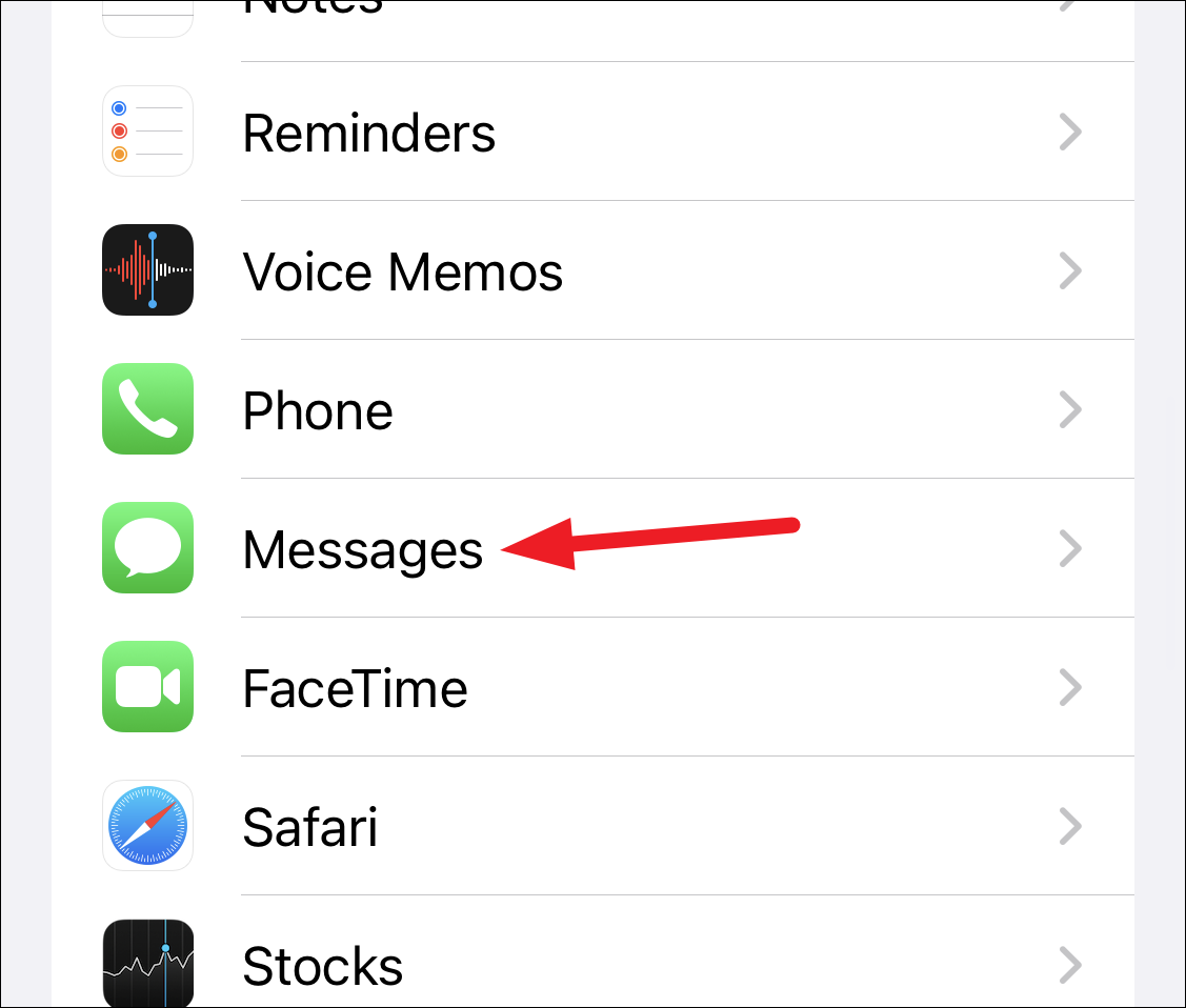 So, open your iPhone settings. Then, scroll down to ‘Messages’ and tap it to open it.