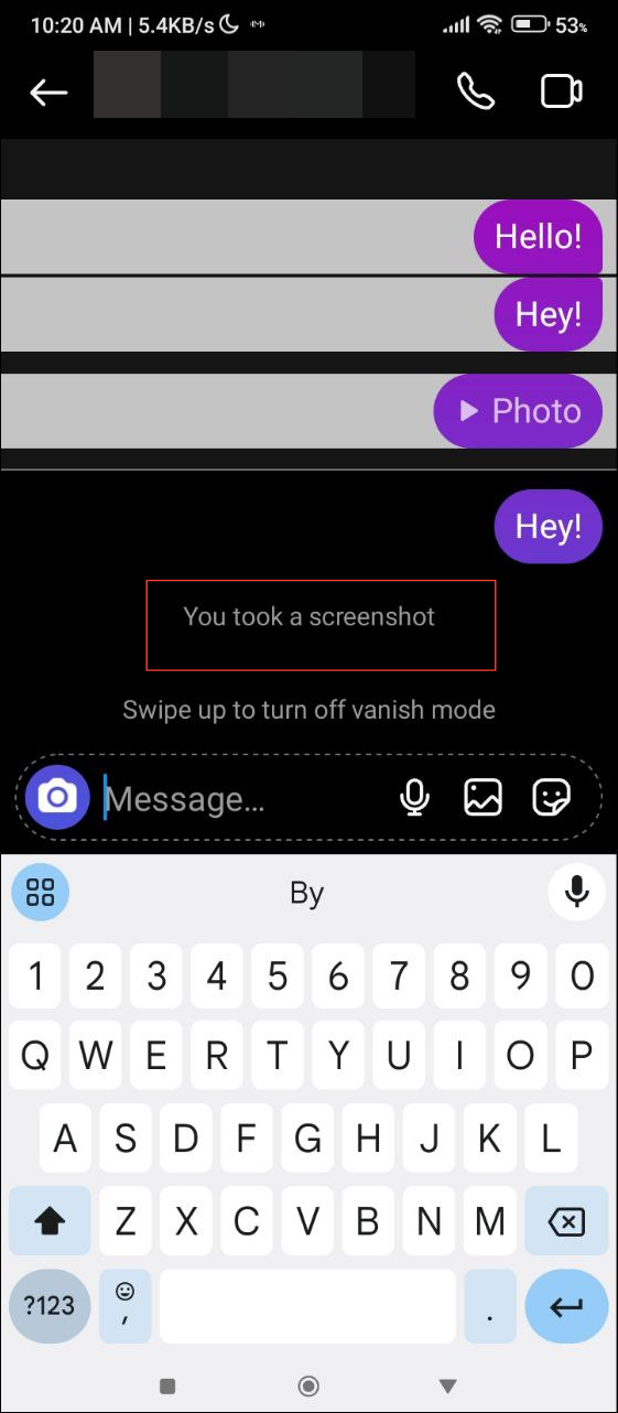 Should you decide to take a screenshot of any message in Vanish Mode, Instagram will immediately show a notification to both participants. It does this to protect user privacy since taking a screenshot of messages in the Vanish Mode defeats the very purpose for which it is designed.