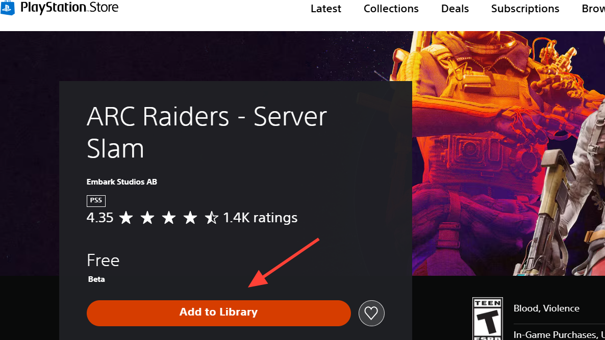 The Server Slam is a separate, free listing on the PlayStation Store. On your PS5, open PlayStation Store, search for “ARC Raiders - Server Slam,” open the product page, choose Add to Library, then Download. You can also open the main ARC Raiders page on PS Store, select the “…” menu, and pick the Server Slam entry from there.