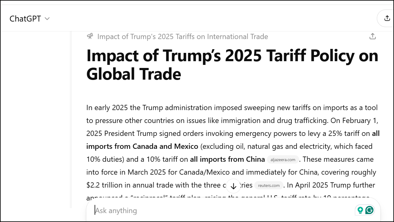 Step 2: Wait for ChatGPT to generate the Deep Research report. The AI will present a structured output, often including sections, tables, images, and linked citations that reference the sources used in its synthesis.