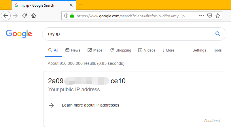 Your IP address in Firefox should be different from your actual IP when the Firefox Private Network is enabled. To cross check, Google “My IP” in any other web browser installed on your PC. The IP address shown Firefox search should not match with the IP shown in other browsers.