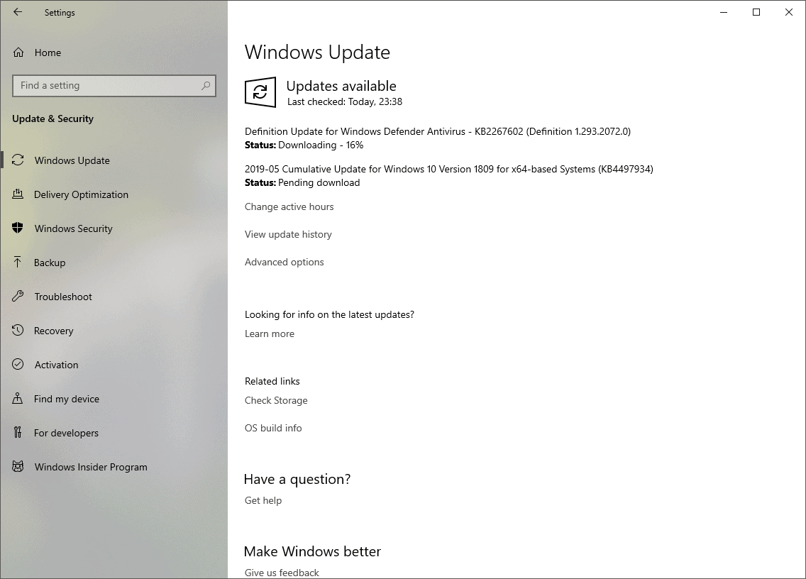 Make sure you have the most recent Windows 10 update installed on your PC. You should either have Windows 10 version 1803 build 17134.799 (KB4499183) or Windows version 1809 build 17763.529 (KB4497934) installed on your PC to be able to get Windows 10 version 1903 update.