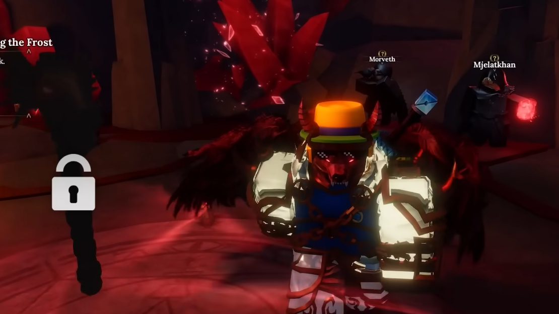 Step 4: Run to the back of Corruption’s Heart. You will see several hooded cult-like NPCs around a pedestal. The Dragon Head Pickaxe is displayed there but initially greyed out and locked.
