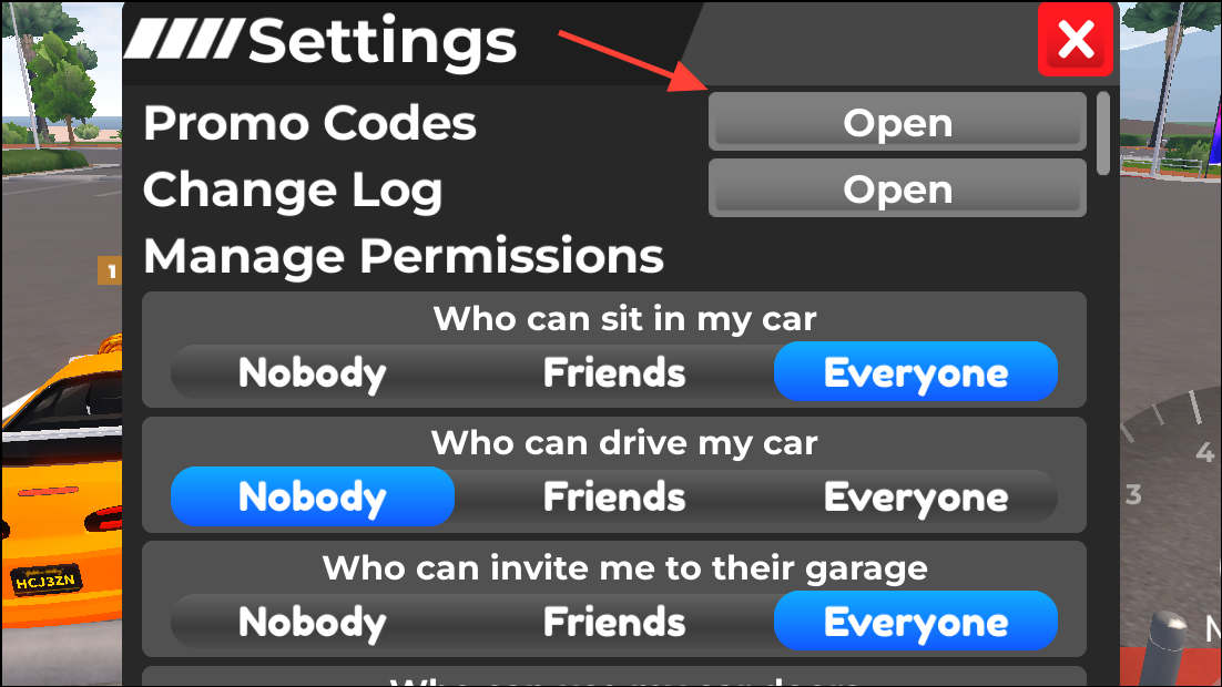 Step 3: In Settings, find the Promo Codes row and press the Open button.