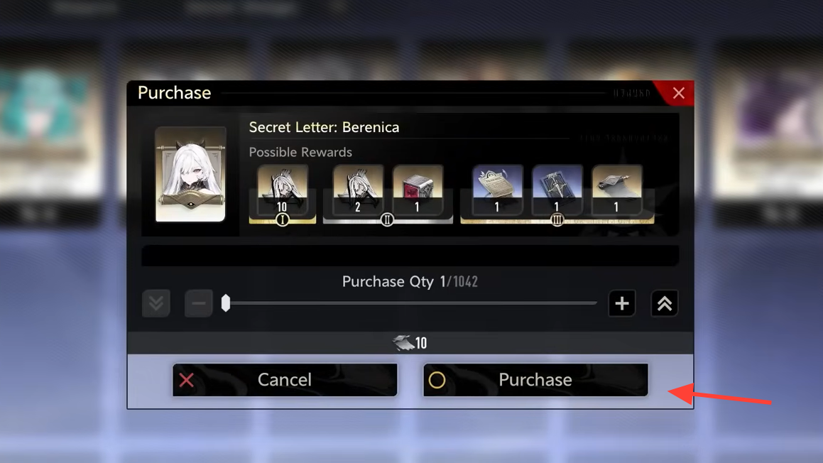 A Secret Letter defines the loot pool for your run. Each letter targets exactly one character, weapon, or Demon Wedge and contains six possible rewards across three rarities. The top-rarity entry is the character Thoughts or the blueprint you’re chasing; the remaining items are upgrade materials for that same target.