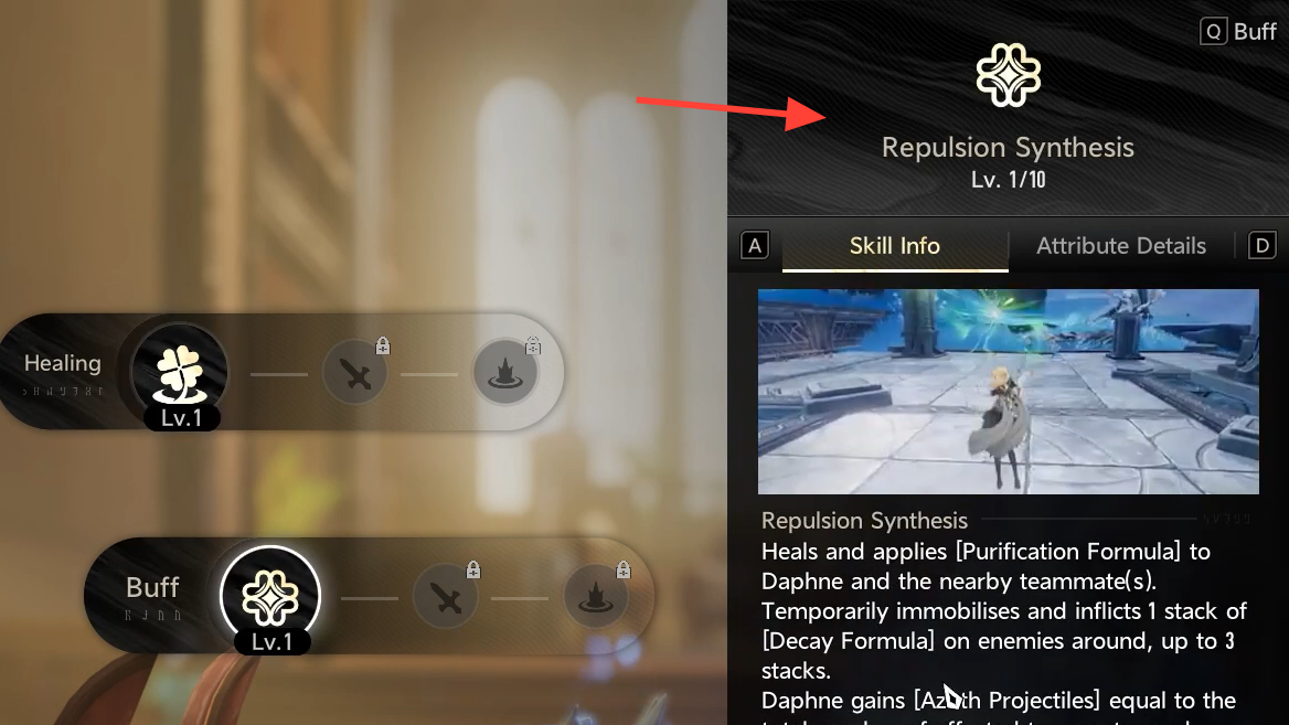 - Cast Repulsion Synthesis when multiple targets are in range or when allies are regrouped. The immobilization sets up burst windows, and the Purification/Decay pairing enables Daphne’s Intron 6 stacking buff.