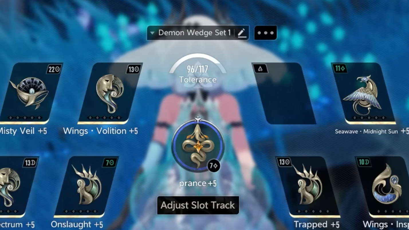 Every wedge slot has a Track symbol, and many wedges carry a matching symbol. Place a wedge into a slot with the same Track and that wedge’s Tolerance cost is cut in half. This is the most impactful way to fit high‑rarity pieces without blowing past the cap.