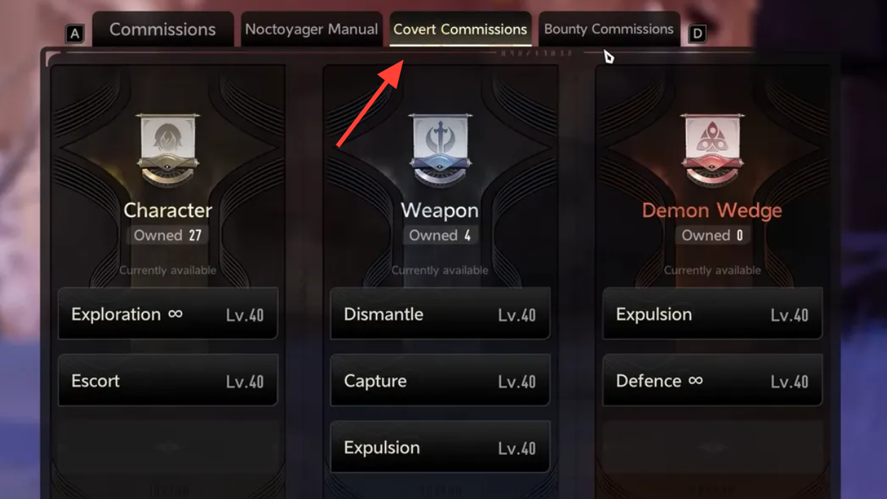 Covert Commissions are repeatable, level-40 missions with shifting objectives. They’re primarily designed for character, weapon, and Demon Wedge unlocks via Secret Letters, but you will incidentally gather materials while clearing them. For Tendrils specifically, set expectations: small bundles per run add up slowly.
