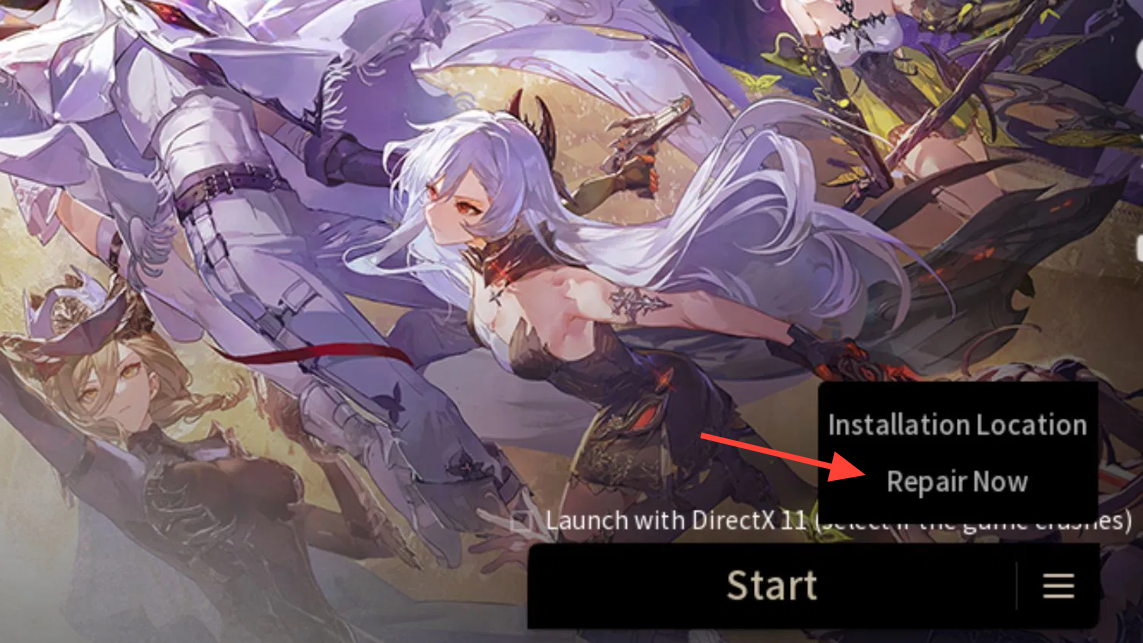 - Run the launcher as administrator, open the menu (three lines near the Start button), and choose Repair Now to verify and redownload damaged files.