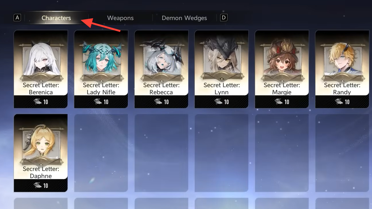 If the current Theater feature is out of reach, wait for the rotation. Every character eventually moves to Nocturnal Echoes and then into the shop’s Secret Letter exchange.