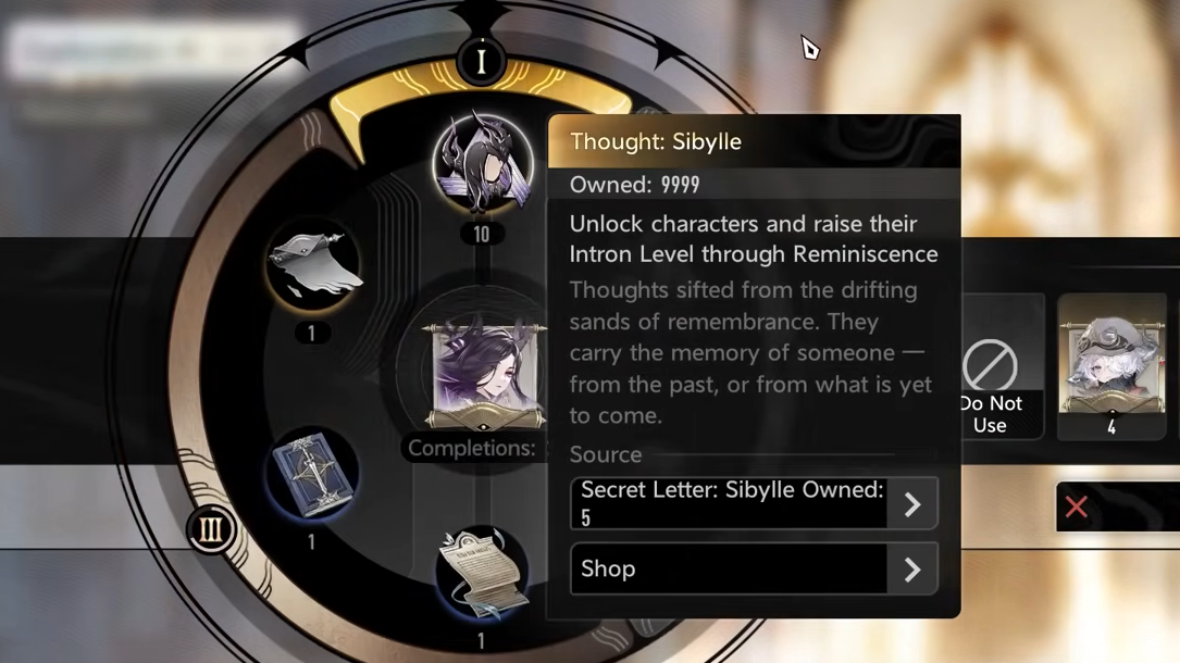 - Thoughts: character-specific drops; 30 Thoughts unlock a new character.