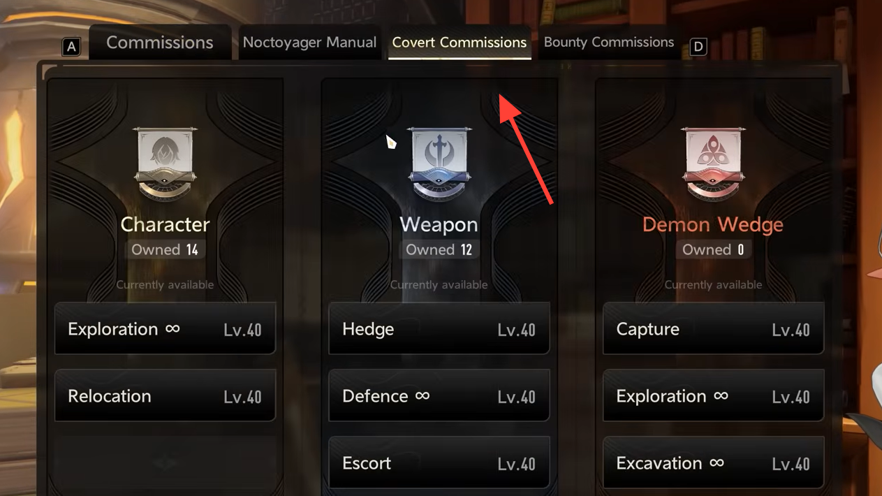- Covert Commissions: level 40 missions that serve as the primary farm for characters, weapons, and Demon Wedges.