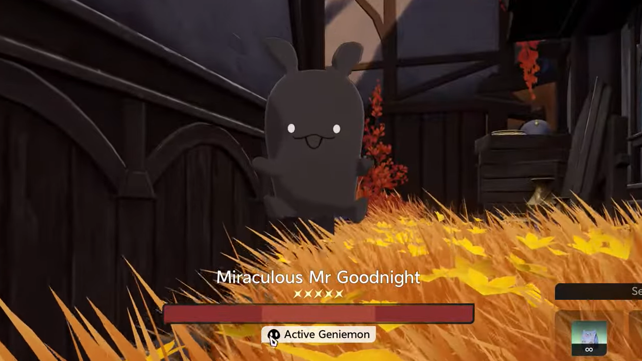 Mr Goodnight is not locked behind gacha or progression rewards; it is obtained through the overworld capture system using treats. Once you reach the Filthoid-Ravaged Village segment on Purgatorio Island and spot the creature outside the story-important house, you can move straight into befriending it.