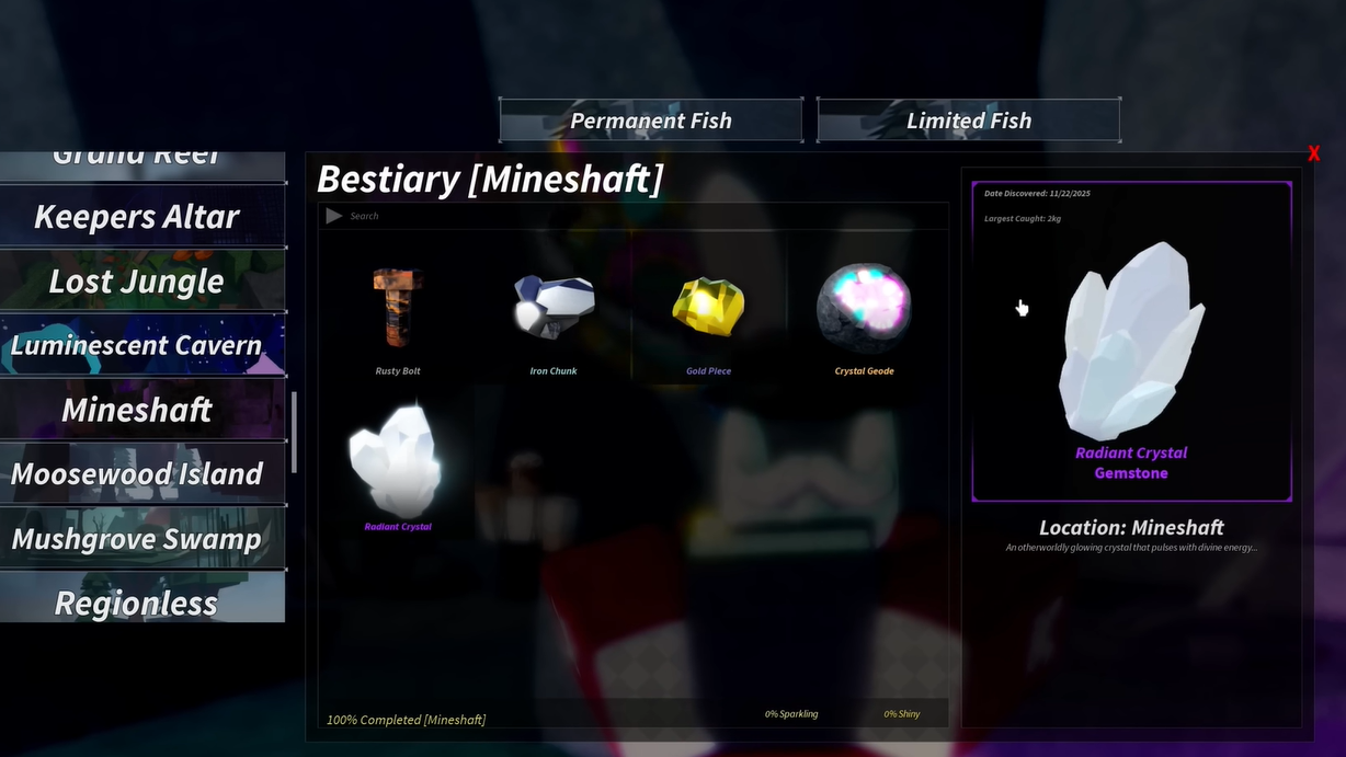 Step 2: Fish in the Mineshaft until you have all three variants: Celestial Radiant Crystal, Serene Radiant Crystal, and Breezed Radiant Crystal.