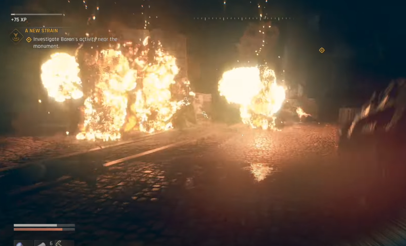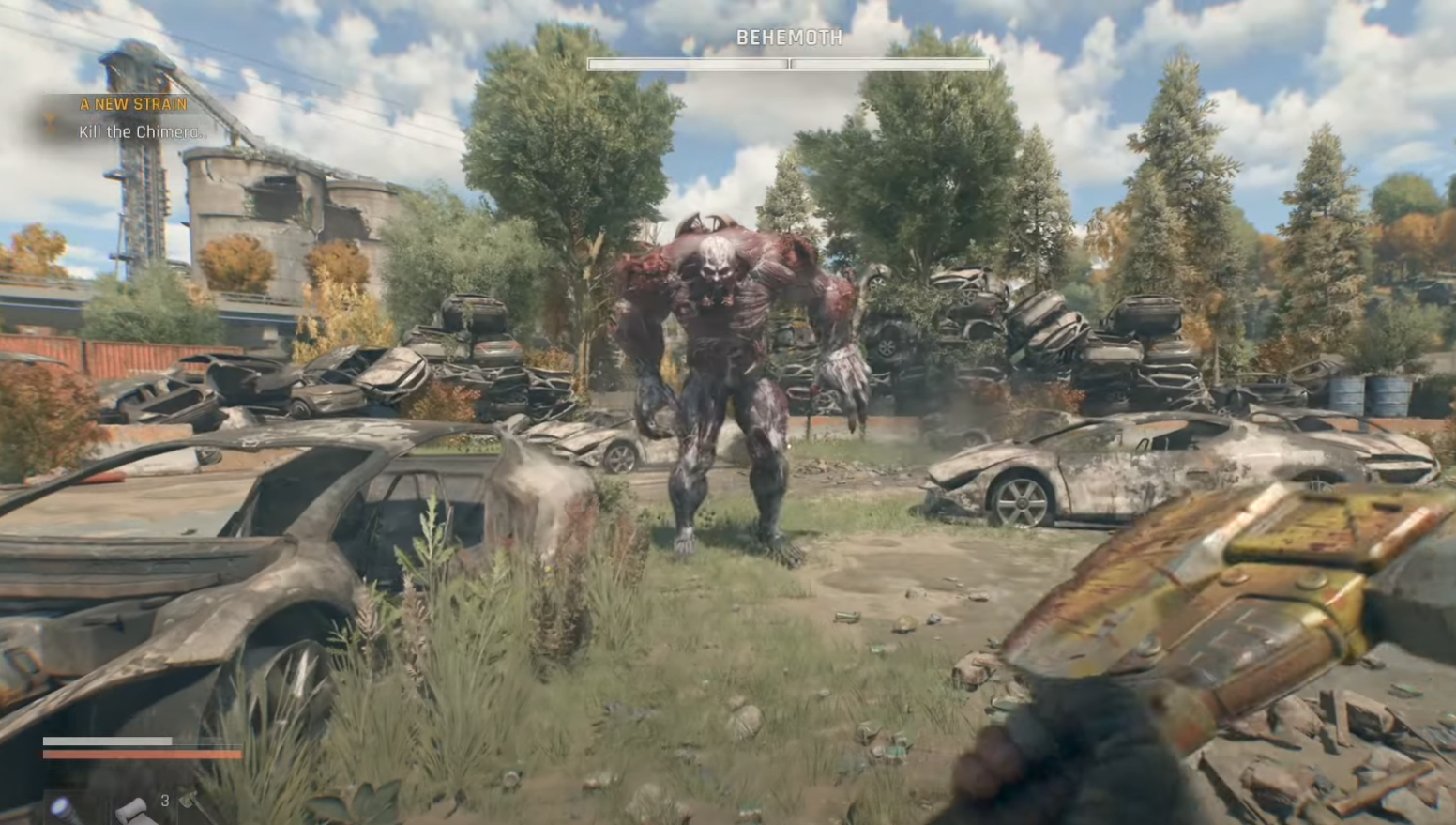 A New Strain picks up immediately after Power Gambit. You’ll chase the Baron’s trail from a war-torn monument to an industrial plant, then into a junkyard where a Chimera variant — the Behemoth — waits. Expect mixed combat against infected and armed militia, a short safe zone detour, and a two-phase boss fight. Finish the encounter and drive the blood sample back to Olivia to close the mission.