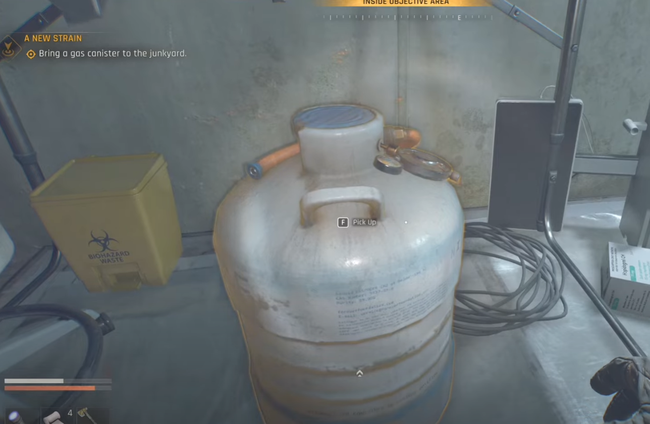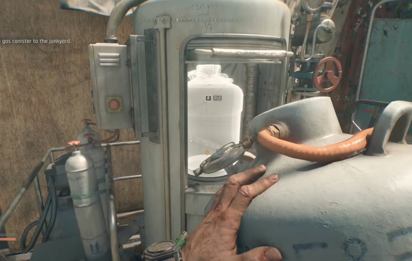 - Find a gas canister in the plant’s basement and carry it to the junkyard.