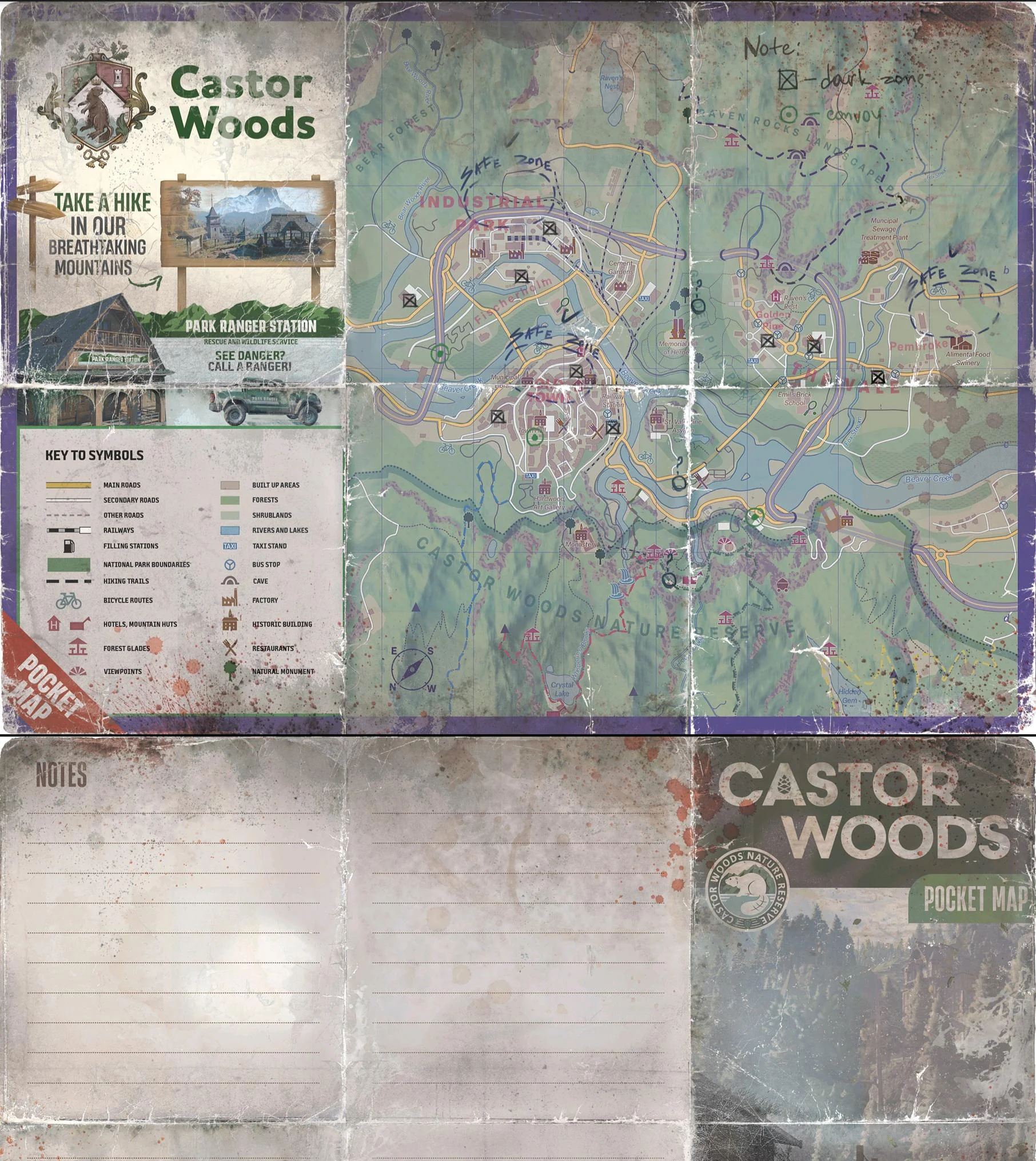 - Castor Woods Tourist Map — a downloadable map covered in notes that highlight locations worth exploring