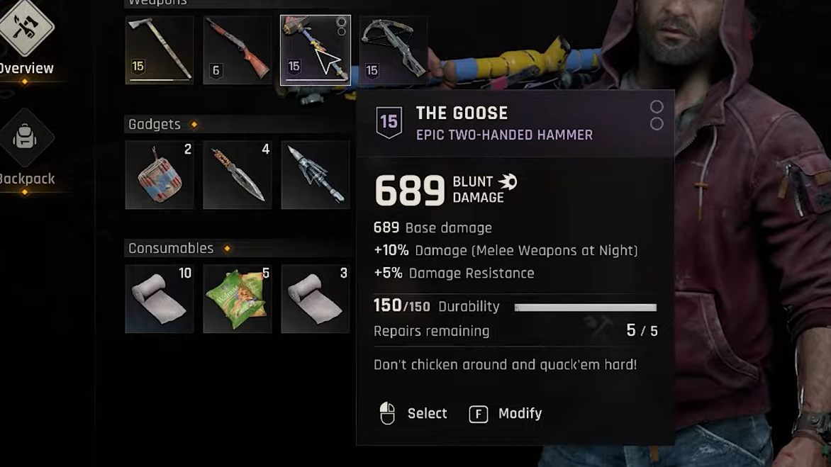 - Clear the basement—watch for one infected playing dead near the workbench—then loot the hammer from the bench.