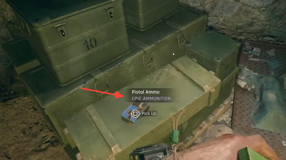 There are occasional ammo stashes in the world. Look for clusters of green military crates; you’ll sometimes find a few boxes of rounds nearby. These aren’t common enough to plan around, but they’re worth sweeping when you spot them.