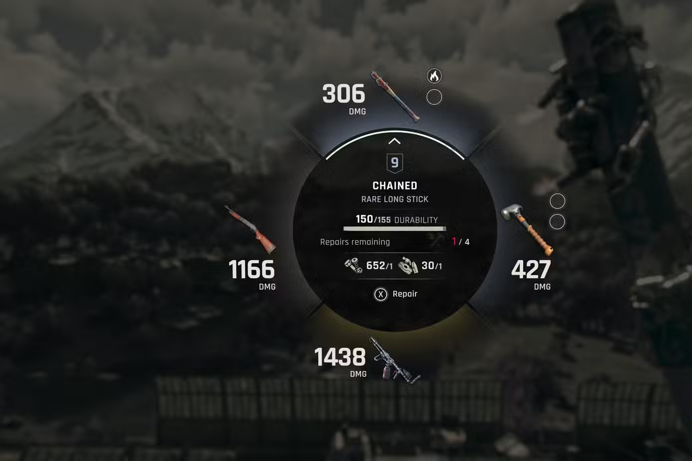 Step 2: Hover over the weapon that’s about to break. Keep an eye on nearby enemies so you don’t get grabbed.