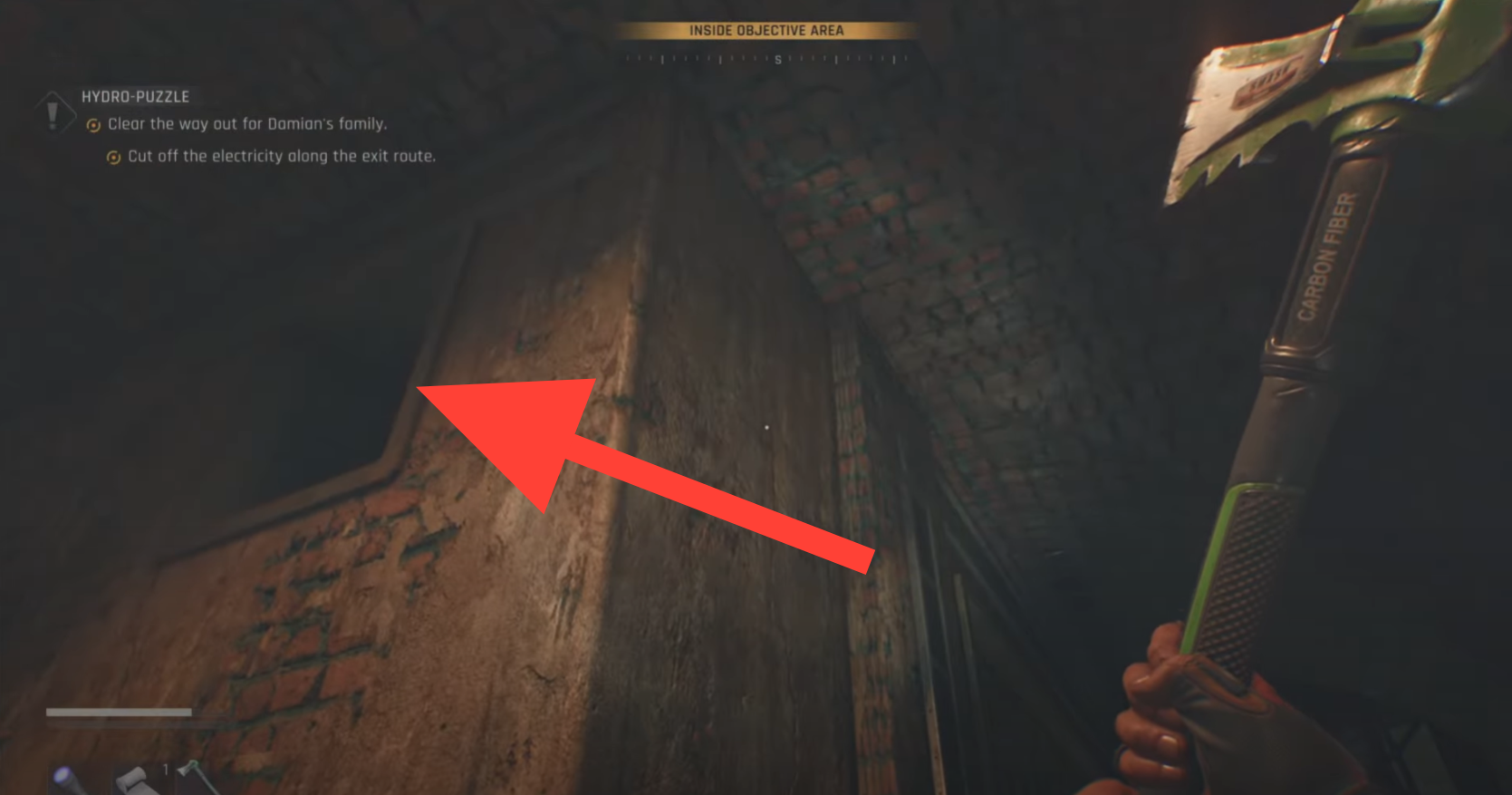 In the corridor ahead you’ll see electrified floor plates. Don’t sprint through them. Instead, enter the vent on the left and throw the switch inside to cut power safely. From there, guide the group upward through the stairwell to the offices.