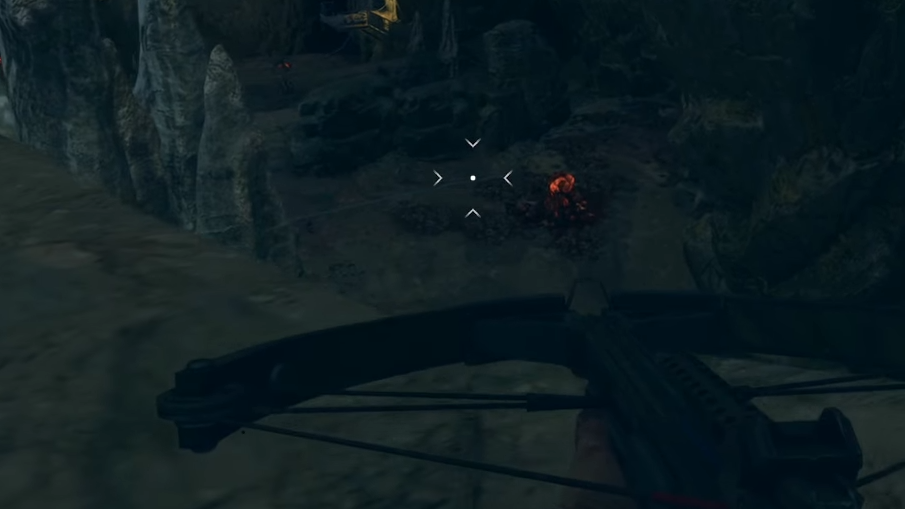 The cave path opens into a small cavern with a central pool. Along the left wall, a slumped skeleton lies next to a Reinforced Stick. Dive to the bottom of the pool to loot a container holding a Voltaic Wrench and a Bracelet. Beyond a short bridge section, you’ll find green crates with supplies such as SMG ammo, pistol ammo, wiring, and scraps. Continue to the overlook to find William.