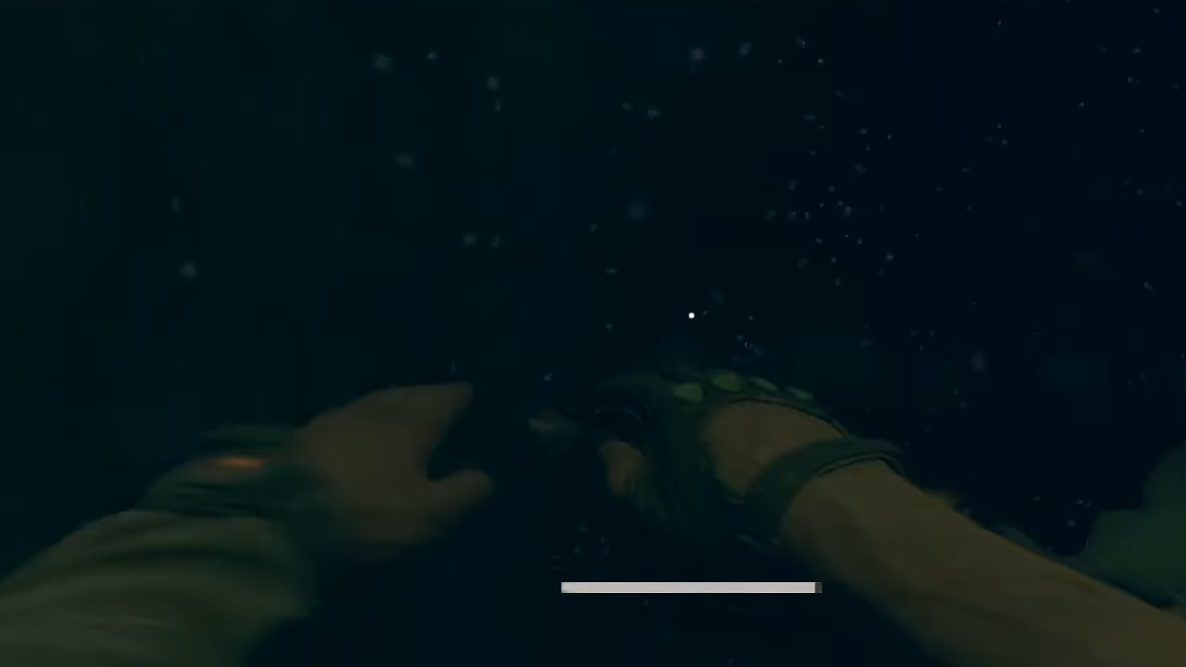 Follow the only forward path as the cavern destabilizes and drop into the water when prompted. Underwater, look for rising bubble streams at junctions—they point to the correct route and help conserve oxygen. In the large chamber where you can breathe, head across to a low tunnel, duck through, and continue a short swim to the next climb.
