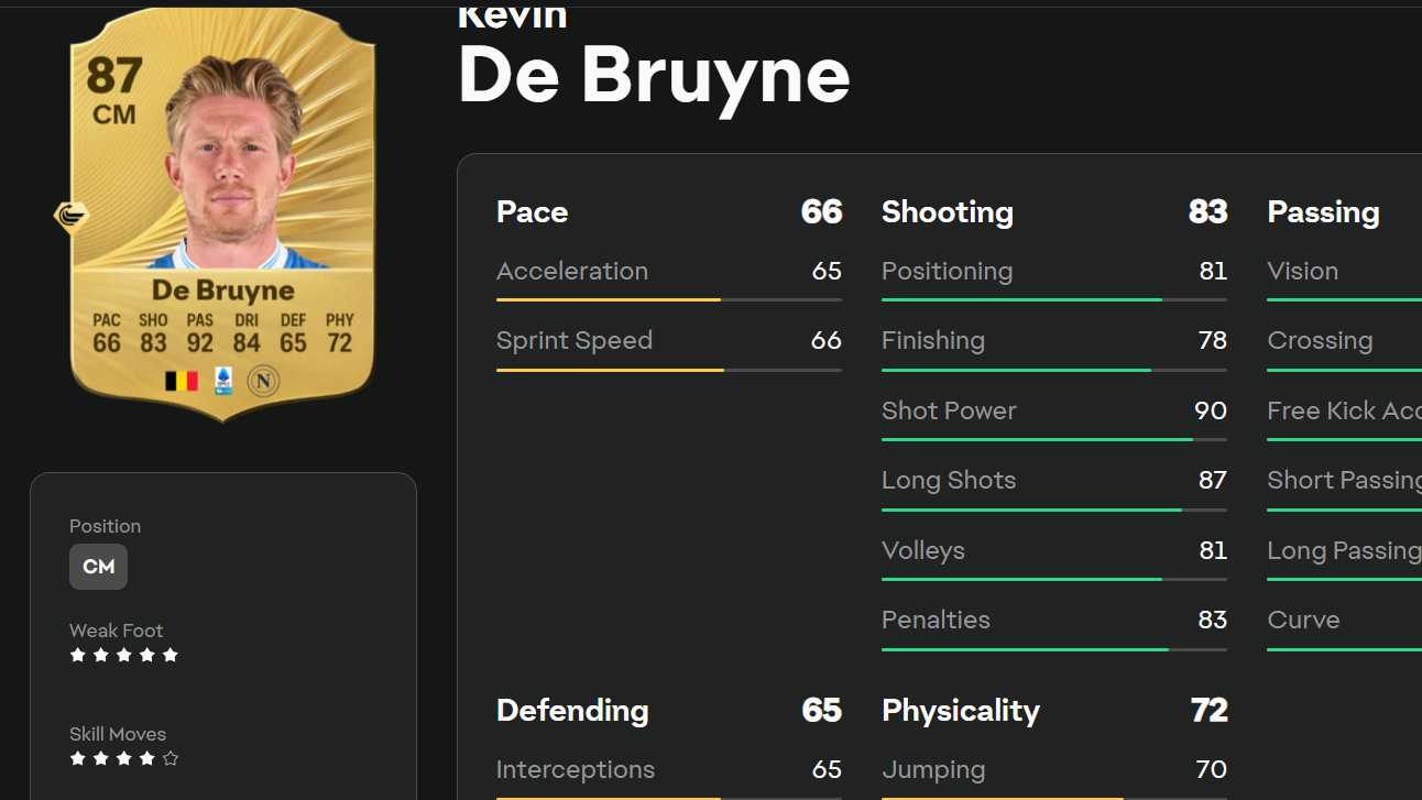 Kevin De Bruyne (Whipped Pass+, CM/CAM, 87 OVR)