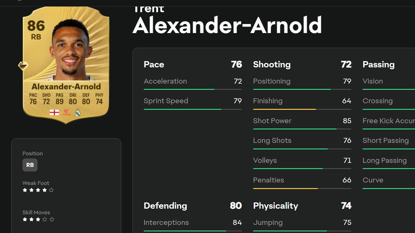 Trent Alexander-Arnold (Whipped Pass+, RB/RM, 86 OVR)