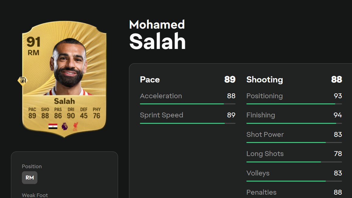 Mohamed Salah (Whipped Pass, RM/RW, 91 OVR)