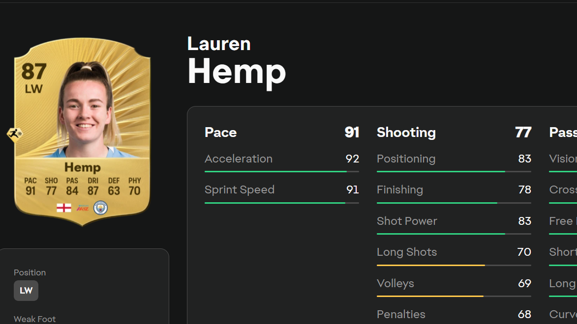 Lauren Hemp (Whipped Pass, LW/LM, 87 OVR)