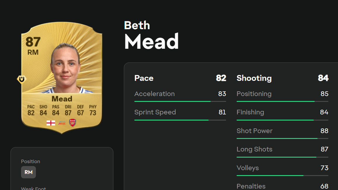 Beth Mead (Whipped Pass, RM/RW, 87 OVR)