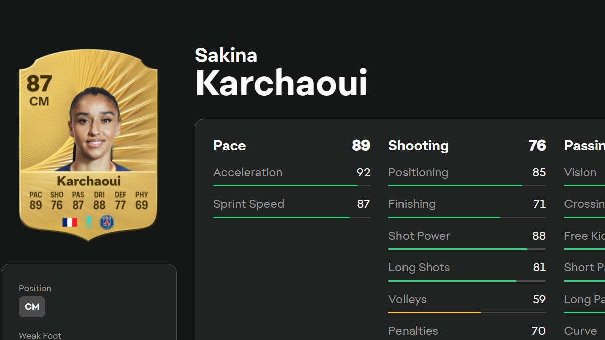 Sakina Karchaoui (Whipped Pass, CM/LB/CAM/LW, 87 OVR)