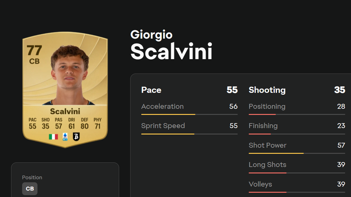 - Giorgio Scalvini (Bergamo Calcio) — OVR 77, POT 86. Around £22.8m; aerial presence, elite standing tackle early.