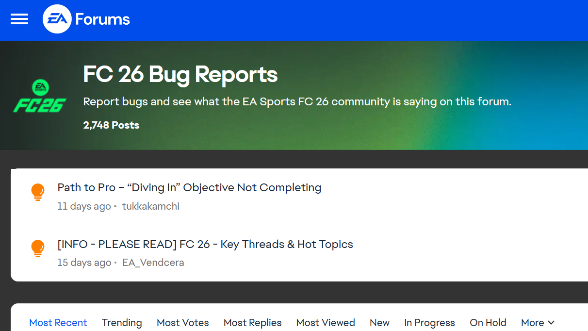 Submitting a clear, reproducible case raises the odds your specific failure pattern gets traced quickly. Use the FC 26 Bug Reports category on the EA Forums at forums.ea.com/category/fc-26-en/ideas/fc-26-bug-reports-en for account‑ or platform‑specific bugs. For broader troubleshooting and visibility, the FC 26 Technical Issues forum is at forums.ea.com/category/fc-26-en/discussions/fc-26-technical-issues-en.
