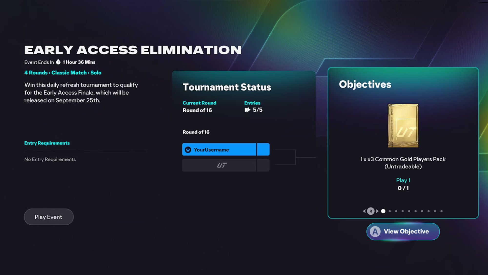 Matchmaking pairs teammates and opponents at the same tournament stage and aims for full outfield squads. If a full group isn’t available, a two-human minimum can queue with AI filling the rest. To play with friends, everyone needs to be on the same round; you can reset your own event progress from the lobby to sync up, which costs one attempt. Entry requirements can include a minimum Rush rank, an archetype level, or a specific archetype.