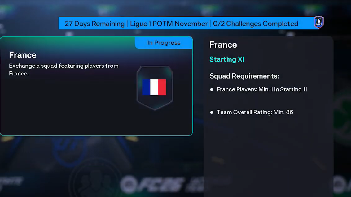 | France | Min. 1 France player, 86-rated squad | ≈ 34,450 coins | Premium Gold Pack |