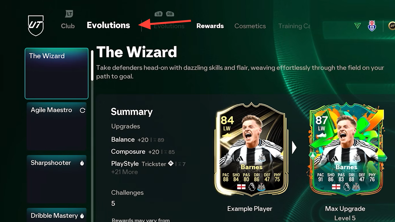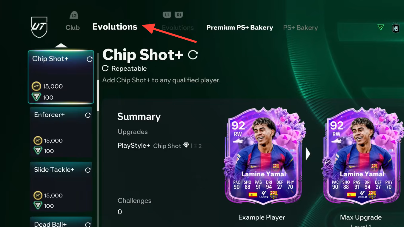 Step 2: Open Ultimate Team and go to Evolutions. The FUT Birthday Bakery tabs appear there as separate options for base PlayStyles and PlayStyle+.