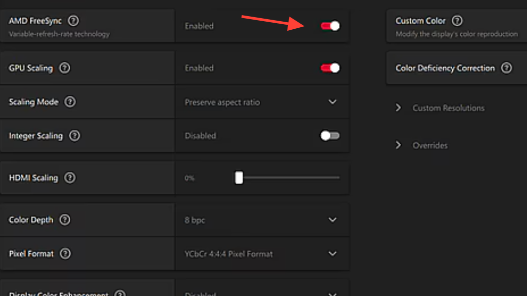 - Enhanced Sync: On (pairs well with FreeSync and a driver‑level FPS cap).