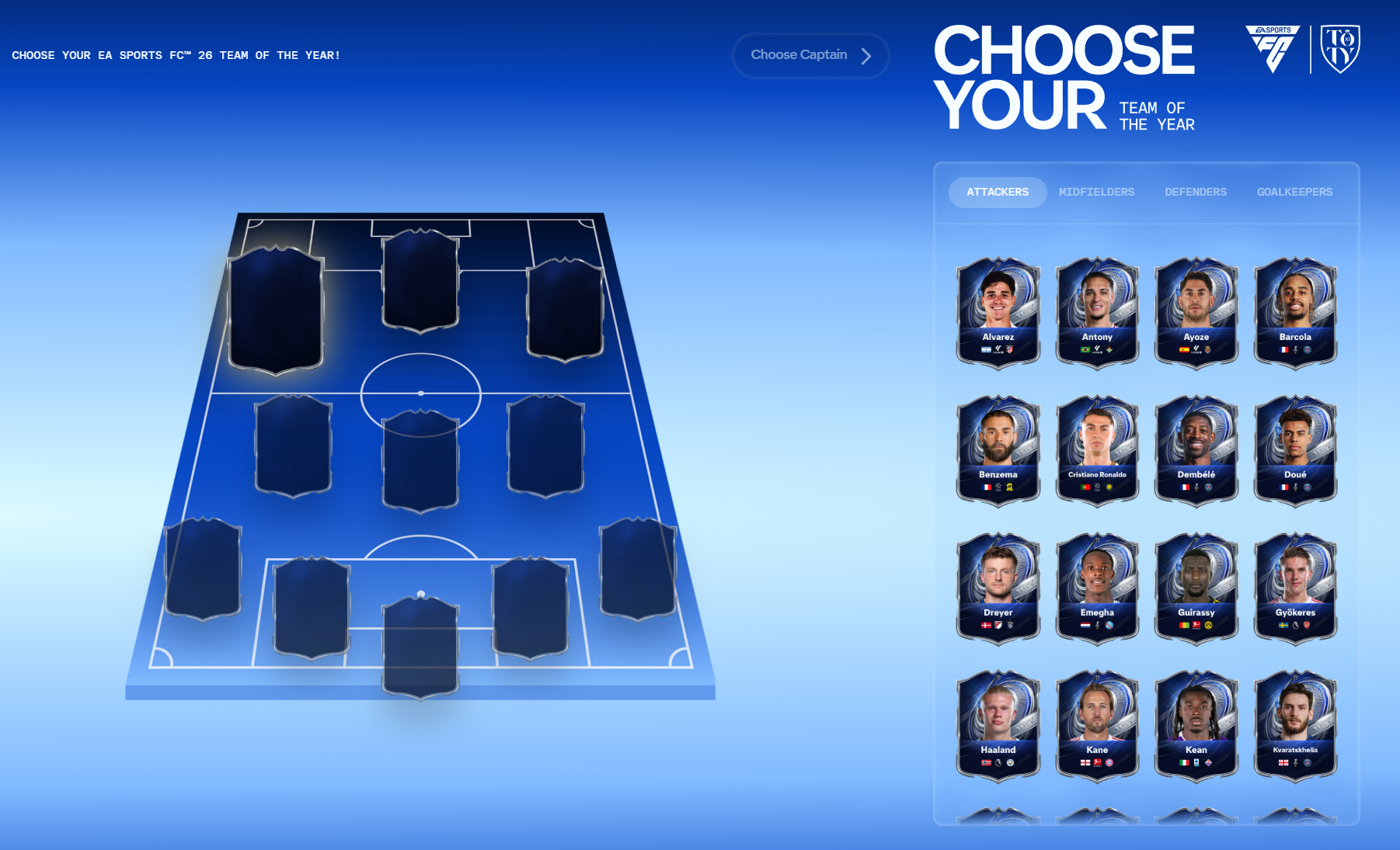 The in-game flow is useful if you want to test how certain players feel on the pitch before committing to your final web vote, and it mirrors the same positional and captain structure used on the standalone voting site.