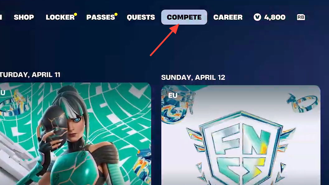 Step 1: Open Fortnite and navigate to the Compete tab in the main menu. Both the Champion Kor FNCS Cup and the Champion Kor FNCS Mobile Cup should appear in the event listings. The skin is also available to inspect from this screen before the tournament begins.